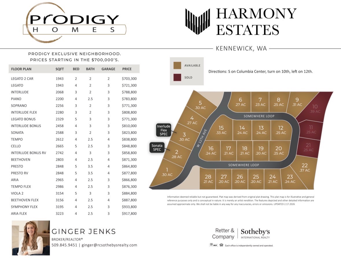 Tucked away off of 10th Ave in Kennewick, Harmony Estates is where modern design meets timeless comfort—all crafted by Prodigy Homes, the exclusive builder for this one-of-a-kind community.